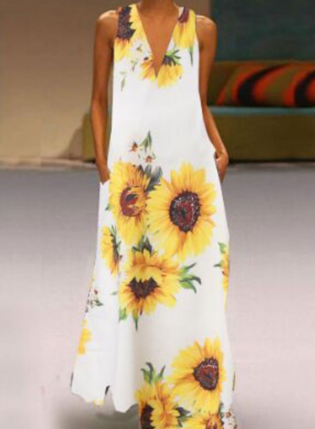 Women's Dress Maxi Sunflower Ribbed Tank Dress